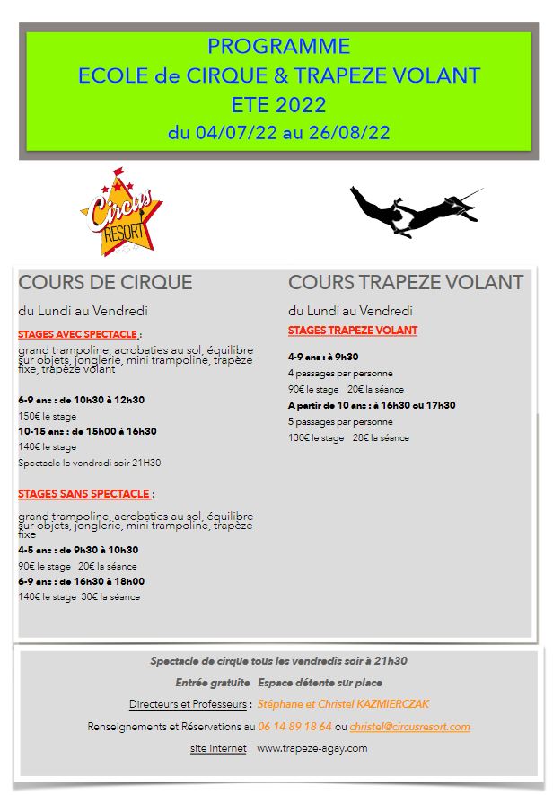 - Le programme du cirque pour l'été 2022