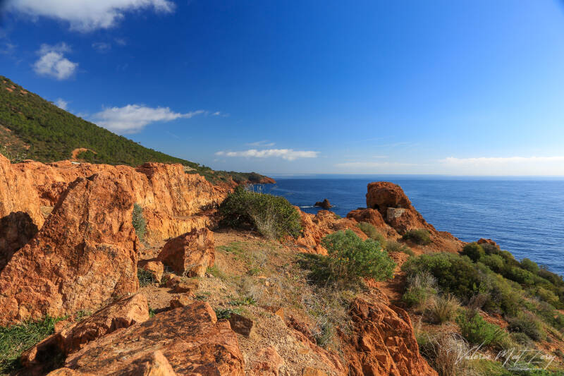 - Le bord de mer de la Corniche d’Or avec ses rochers, ses criques, ses calanques et ses plages, entre Agay et La Napoule